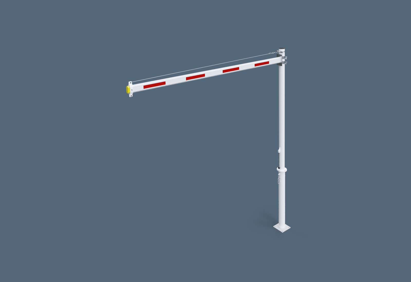 Den udtrækkelige aluminiumsstang er i farven hvid-rød, hvilket sikrer god synlighed og dermed bidrager til sikkerheden. Kombinationen af fleksibilitet, nem montering og materialer af høj kvalitet gør TOPREGAL Højdebegrænser HB3/4 med drejelig mast det perfekte valg til din virksomhed.