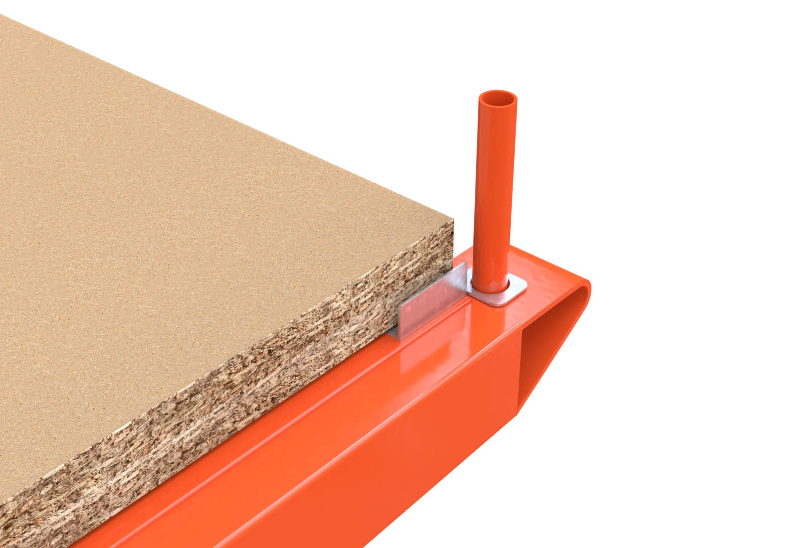 Med denne hylde kan reolen f.eks. læsses med paller, tønder, pakker eller transportbokse eller lagervarer af enhver type. Hylderne bruges desuden som nedfaldsbeskyttelse og beskytter dine lange varer mod uønsket bøjning mellem grenene.