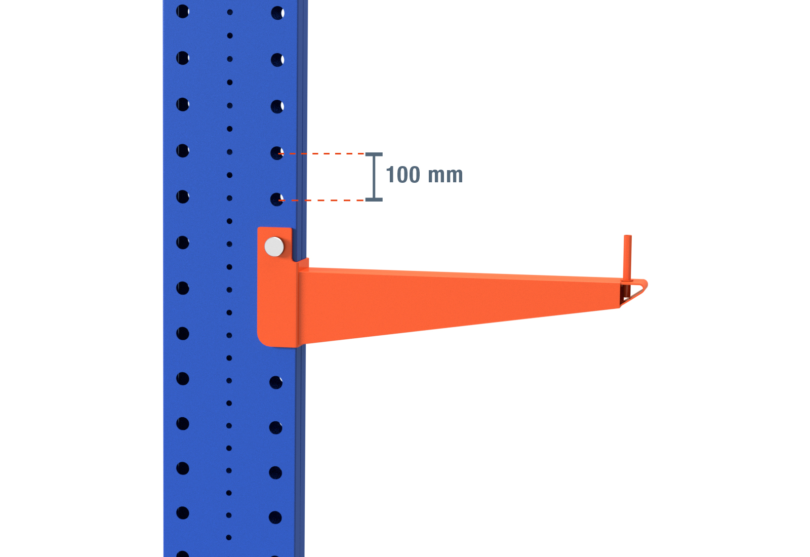 Den lodrette belastning er maksimalt 3.000 kg. Aksemålet (det indvendige mål mellem to standere) er dybest set 150 cm. For specifikke bredder afsluttes reolen med et felt med aksemålet 100 cm. Bedst af alt: Du kan til enhver tid udvide din reol uanset om i bredden eller antal niveauer.