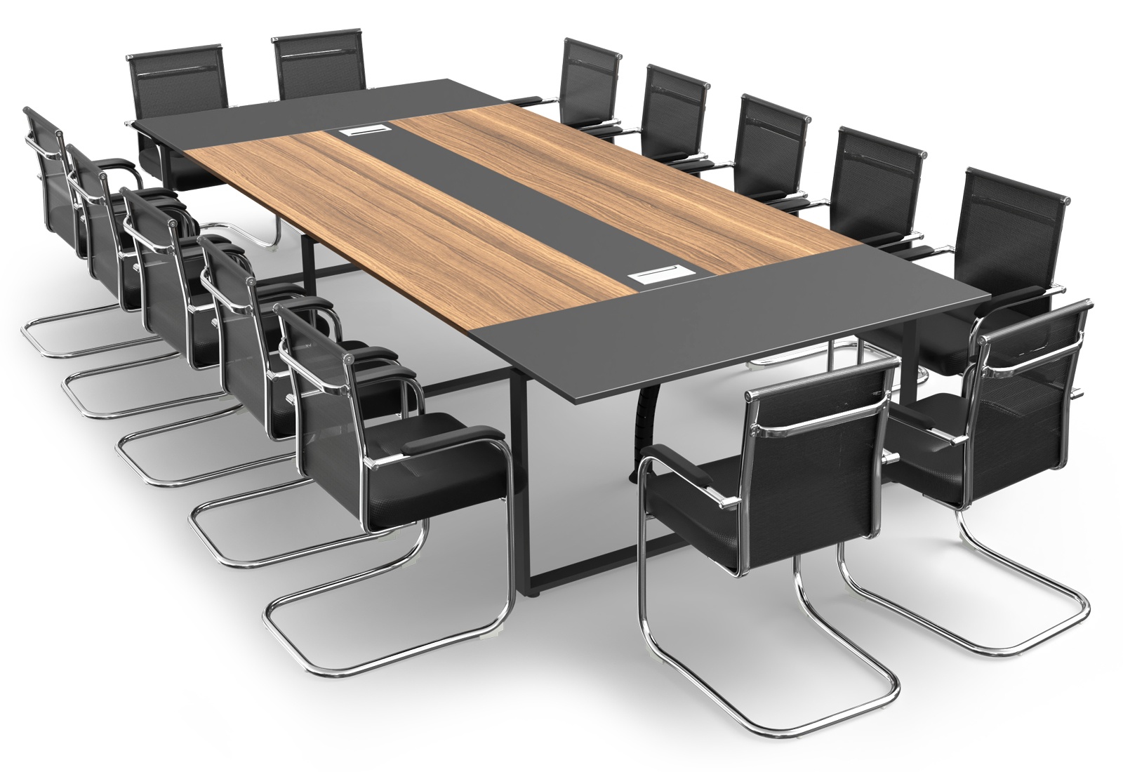 Konferencebordssæt ANJA360 i grå-valnøddebrun + 14 MARINA stole