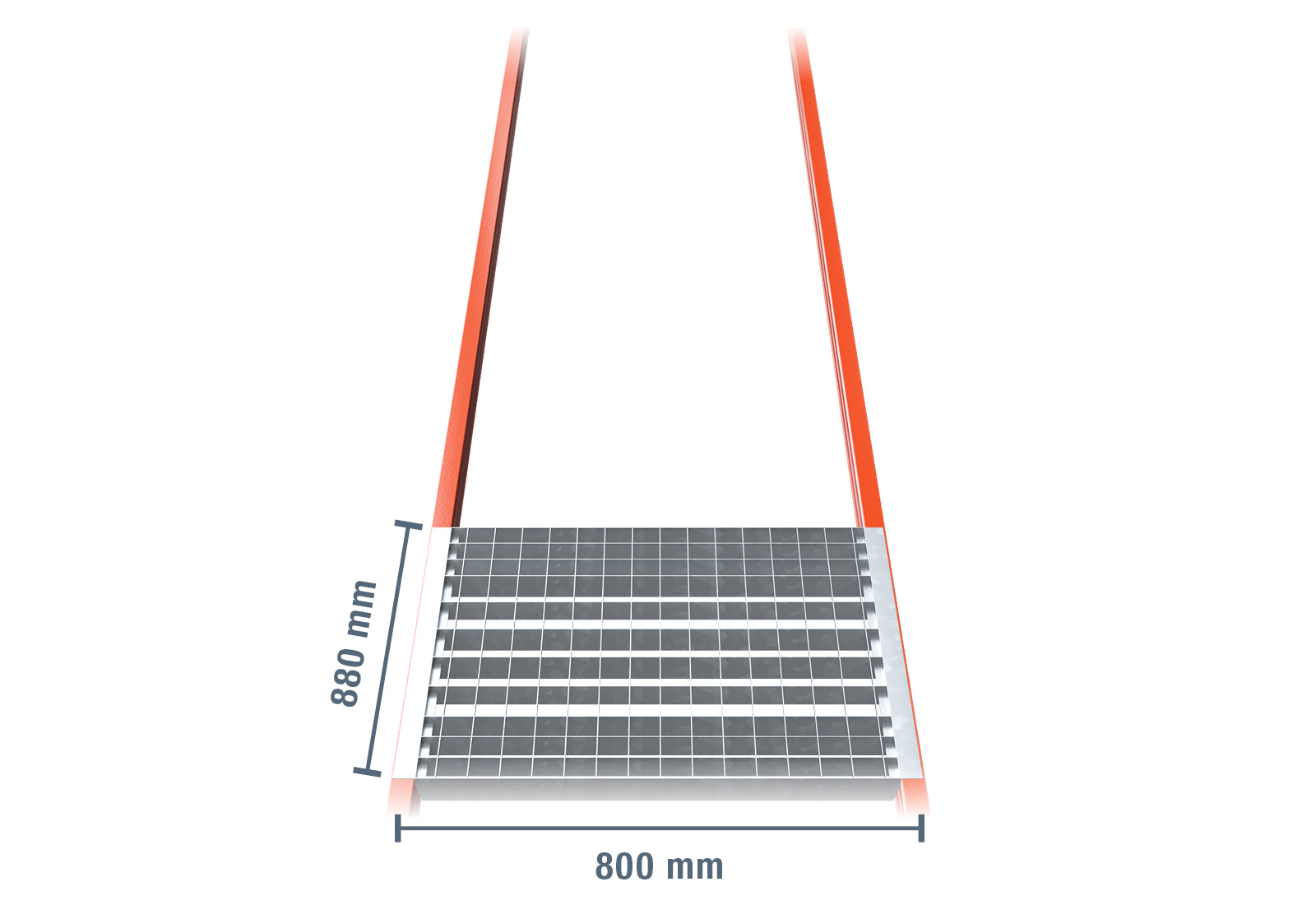 880 mm galvaniseret gitterristplade til pallereol PR4500, PR9000, PR15000 / 800 mm dyb / belastning 800 kg