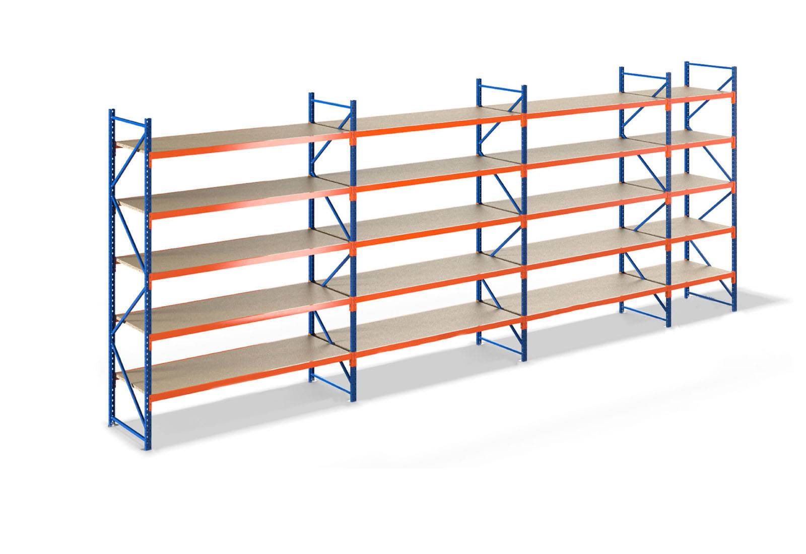 8,0 m opbevaringsreol LR2000 / 60 cm dyb / 2,5 m høj / 5 niveauer / hylde træ