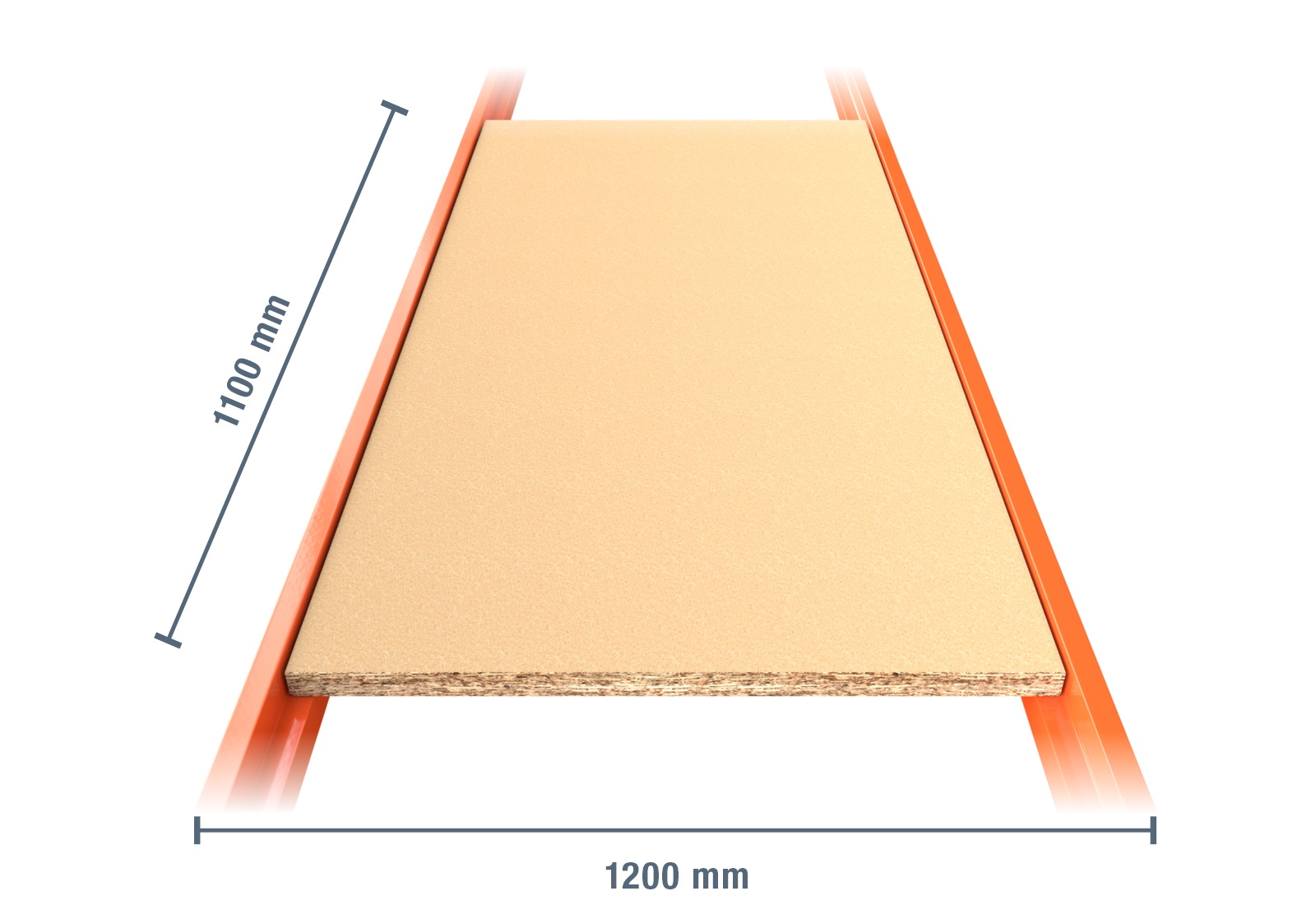 1.100 mm træhylde til opbevaringsreol LR2000 / 1.200 mm dyb / 25 mm tyk