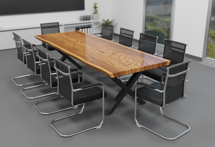 TOPREGAL GmbH har udviklet konferencebordet LINA til store møder og tunge belastninger i hverdagen i en virksomhed. Med sin puristiske elegance og industrielle design er denne model velegnet til konferencerum, eksklusive kantiner og som møde- og arbejdsbord i et moderne kontormiljø. Med en længde på 280 × 105 cm har bordet plads til 10 personer og i versionen 350 × 135 cm endda 12. Den ergonomiske højde på 75 cm passer til alle standardstole. Bordet imponerer med en gennemgående og solid seks centimeter tyk massiv træplade af Parota med et naturligt udseende og en naturlig form samt levende stenslag, hvis overflade dog er glat takket være den robuste melaminbelægning. Hvert stykke er unikt. Den lige kontrast til den oprindeligt formede trækant er den stærke fod af pulverlakeret sort metal i X-form, som danner en lige kontrast til den oprindeligt formede trækant. "Som industrivirksomhed ved vi præcis, hvilke krav kontormøbler skal opfylde i daglig brug. Det var vigtigt for os at finde en løsning, der er robust, stærk og holdbar, og som samtidig er æstetisk, moderne og bæredygtig. Resultatet er et industrielt designbord fra en industriprofessionel", forklarer Jürgen Effner, administrerende direktør for TOPREGAL GmbH. Begge modelvarianter kan nemt bestilles online og leveres direkte.