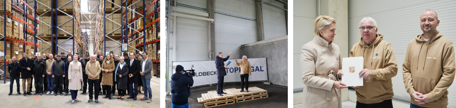 Udvidelsen af TOPREGALS' lager- og produktionsanlæg i industriparken Berlin-Stettin i Pasewalk skrider støt fremad: Kun tre år efter indflytningen i industriparken og færdiggørelsen af de første fire haller fejrede den mellemstore virksomhed inden for lager- og fabriksudstyr rejsegilde på to nye haller den 3. december 2024. Talrige inviterede gæster - herunder Manuela Schwesig, ministerpræsident for delstaten Mecklenburg-Vorpommern, Wolfgang Blank, udpeget minister for økonomi, infrastruktur, turisme og arbejde i delstaten Mecklenburg-Vorpommern - deltog i ceremonien, Parlamentarisk statssekretær for Vestpommern og Østmecklenburg Heiko Miraß, afdelingschef i ministeriet for økonomi, infrastruktur, turisme og arbejde i Mecklenburg-Vorpommern Ralf Sippel, distriktsadministrator for Vorpommern-Greifswald-distriktet Michael Sack og borgmester i Pasewalk Danny Rodewald - om industriområdet Pasewalk. Efter en velkomsttale af Jürgen Effner og Gino Klatt, administrerende direktør for TOPREGAL GmbH, blev den traditionelle rejsegilde-tale holdt af Jörg Heuer, leder af Goldbeck-kontoret i Schwerin. Manuela Schwesig holdt derefter en tale. "TOPREGAL pustede liv i industriparken Berlin-Stettin med de første fire haller. Det var i 2021, og nu kommer der yderligere to haller til. Det vil skabe mindst 20 nye arbejdspladser. Jeg er glad for, at TOPREGAL er blevet så godt modtaget i Pasewalk. Industriparken er et godt eksempel på, hvad delstatsregeringen ønsker at opnå med sit industrikoncept for Mecklenburg-Vorpommern: Mere industri. Mere merværdi. Flere arbejdspladser," sagde ministerpræsidenten. "Efter at have færdiggjort vores første fire haller med et areal på over 20.000 kvadratmeter stod det hurtigt klart, at vi også ville udvide vores Pasewalk-område. Disse to nye haller på hver 5.000 kvadratmeter er derfor ved at blive bygget på en tilstødende grund. Det vil gøre det muligt for os at imødekomme den store efterspørgsel efter vores SoloPort-produkter og skabe flere arbejdspladser. I fremtiden vil nye produkter som f.eks. solcelleparkeringsoverdækninger blive fremstillet, opbevaret og afsendt her," fortæller Jürgen Effner.