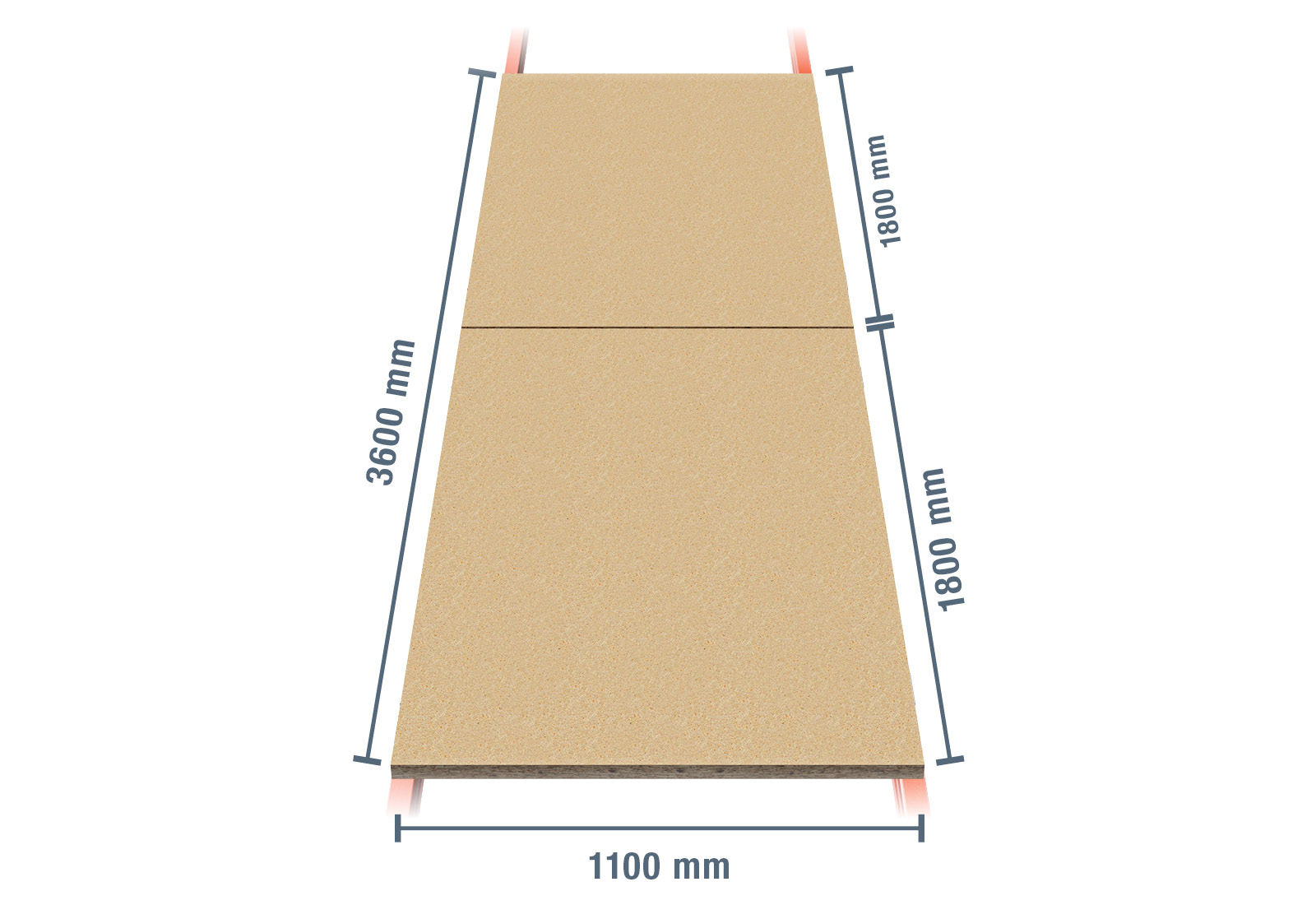 Med denne pallereoltræhylde kan du hurtigt og nemt tilføje ekstra opbevaringsplads i din TOPREGAL-pallereol, så selv opbevaring uden en palle er mulig. Den økonomiske træhylde er en 38 mm tyk spånplade med målene 3.600 mm x 1.100 mm og placeret på pallereolens traverser ved hjælp af 4 Z-vinkler.