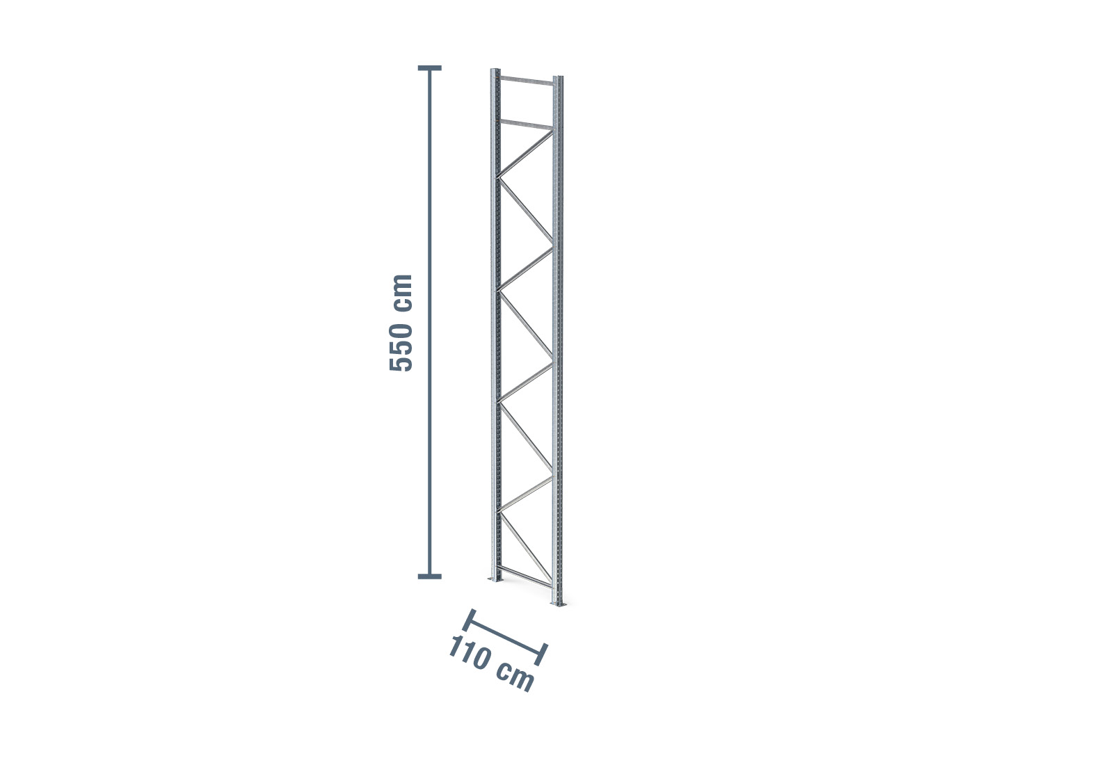 - 1 x 5,5 m stander galvaniseret til pallereol PR9000F / 110 cm dyb / feltbelastning 9.000 kg