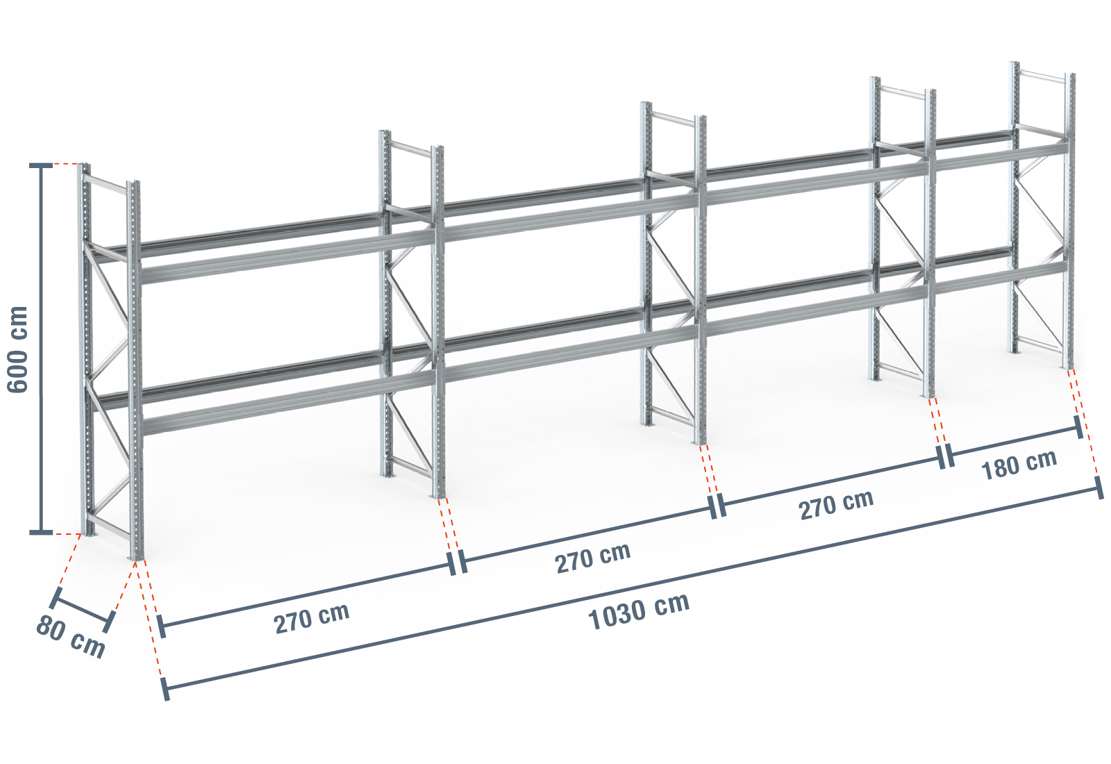 10,3 m pallereol PR9000F galvaniseret / 80 cm dyb / 6 m høj / 2 niveauer til 33 europaller