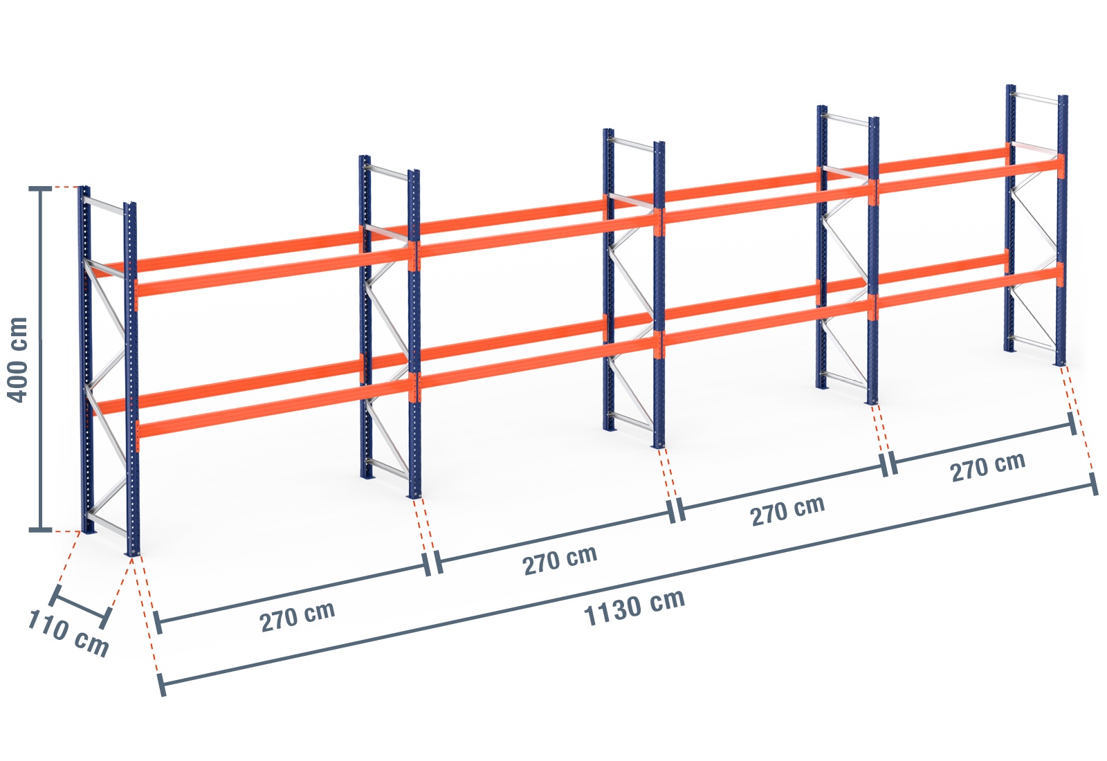 11,3 m pallereol PR9000 / 110 cm dyb / 4 m høj / 2 niveauer til 36 europaller