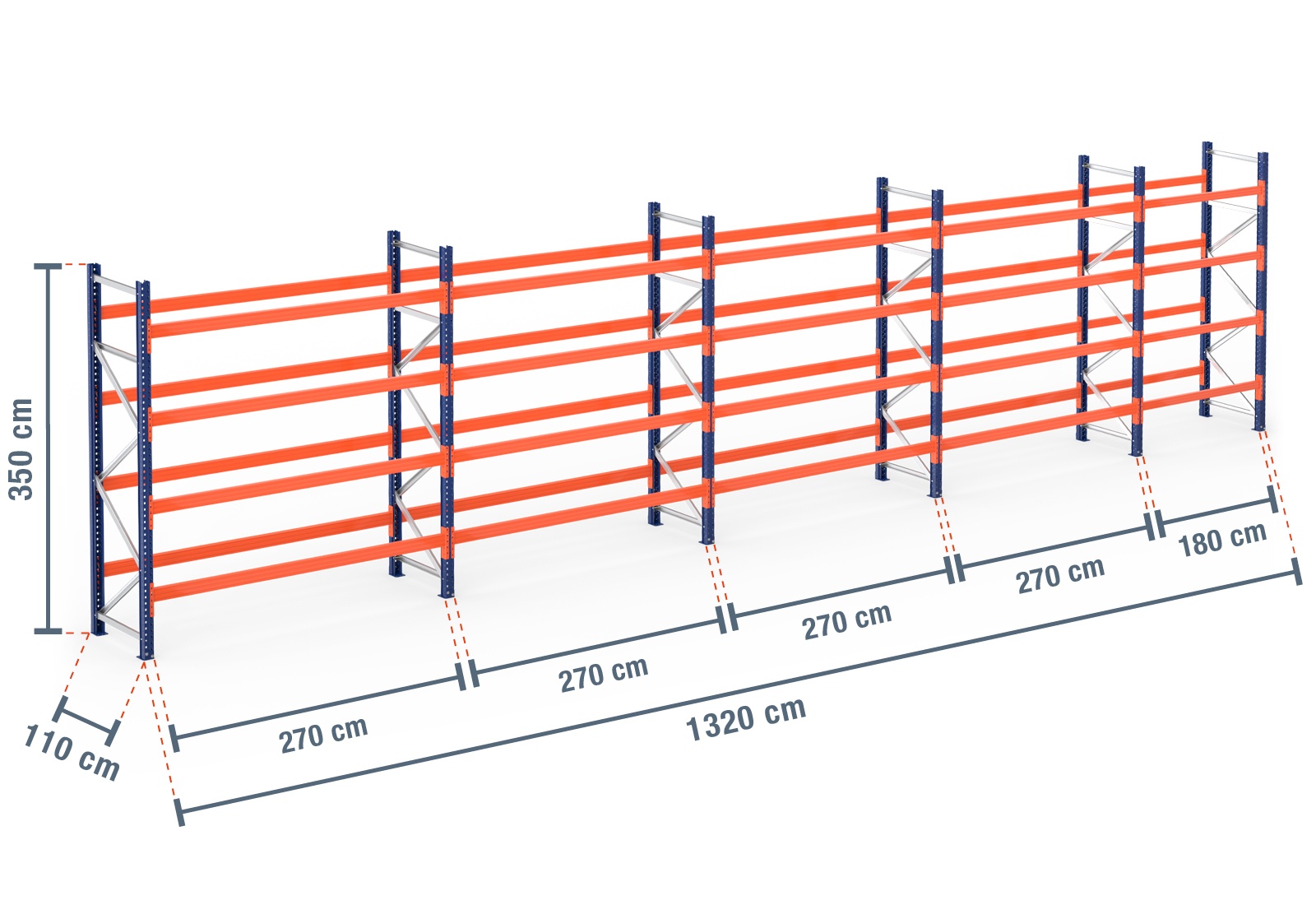 13,2 m pallereol PR9000 / 110 cm dyb / 3,5 m høj / 4 niveauer til 70 europaller