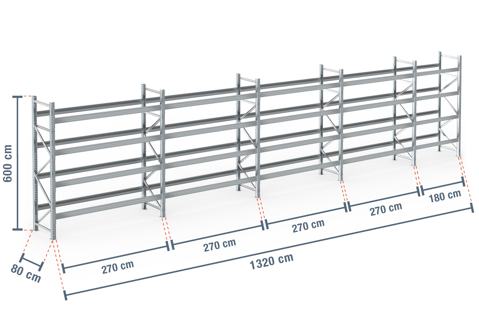 13,2 m pallereol PR9000F galvaniseret / 80 cm dyb / 6 m høj / 4 niveauer til 70 europaller