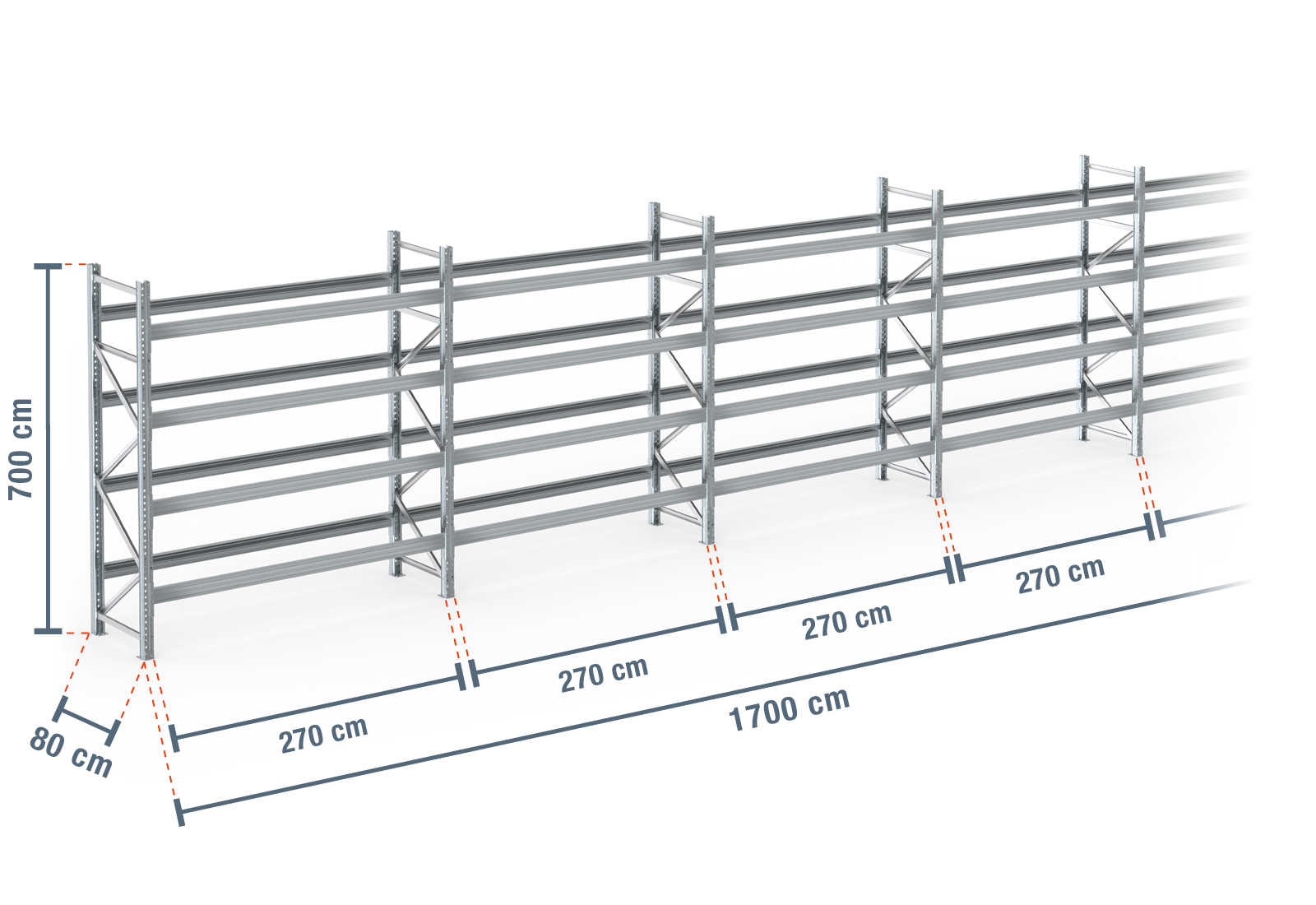 17 m pallereol PR9000F galvaniseret / 80 cm dyb / 7 m høj / 4 niveauer til 90 europaller