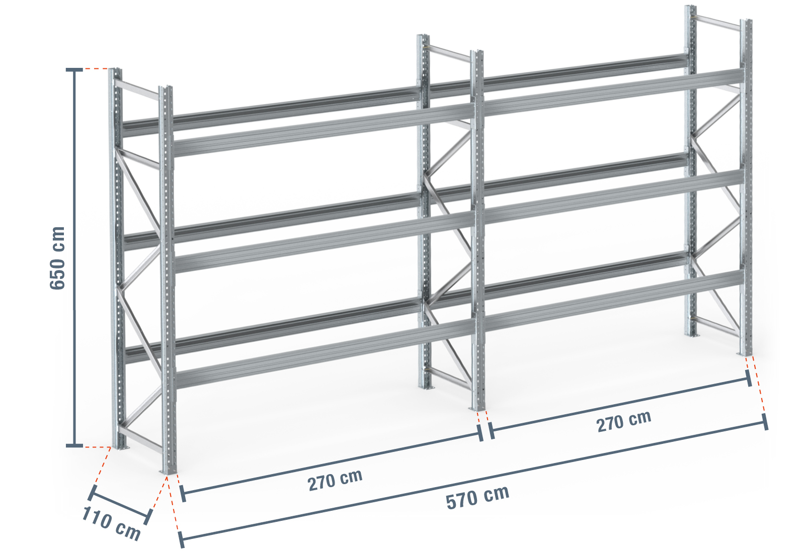 5,7 m pallereol PR9000F galvaniseret / 110 cm dyb / 6,5 m høj / 3 niveauer til 24 europaller