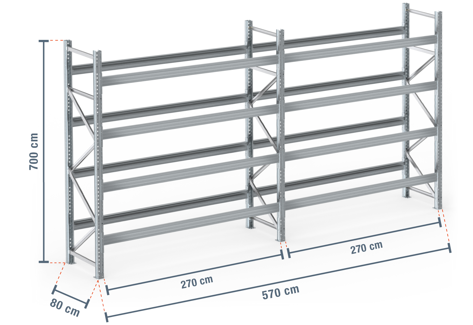 5,7 m pallereol PR9000F galvaniseret / 80 cm dyb / 7 m høj / 4 niveauer til 30 europaller