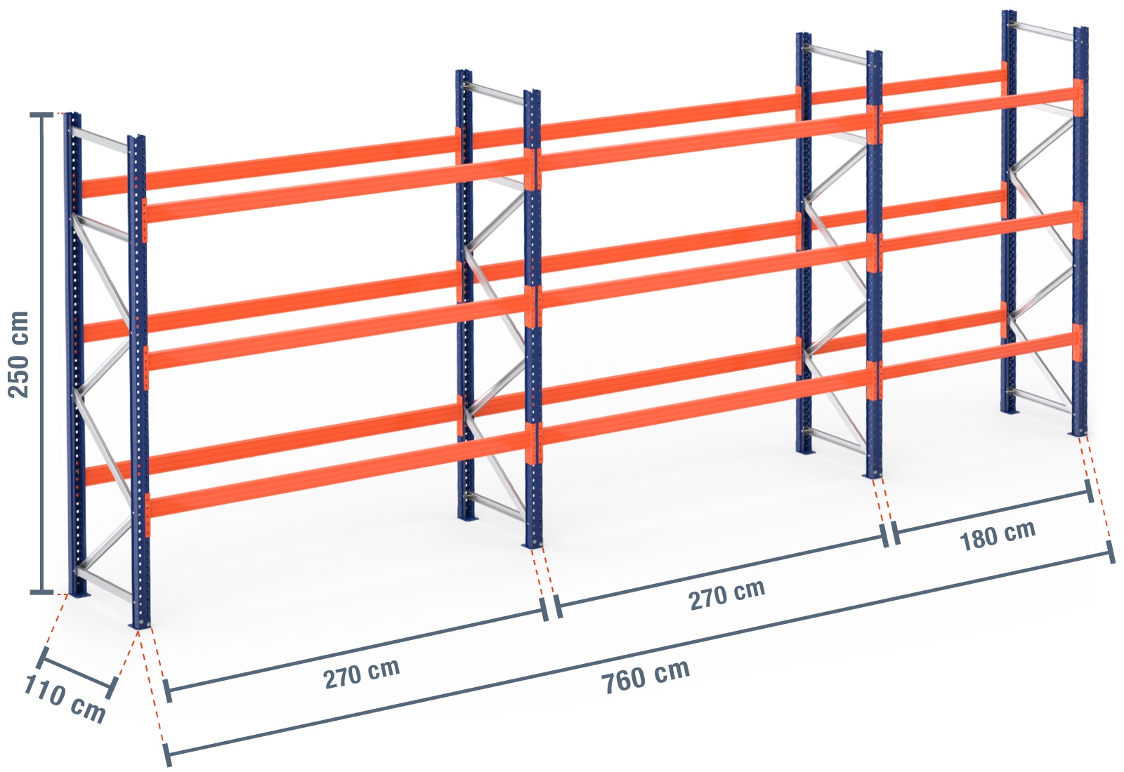 7,6 m pallereol PR9000 / 110 cm dyb / 2,5 m høj / 3 niveauer til 32 europaller
