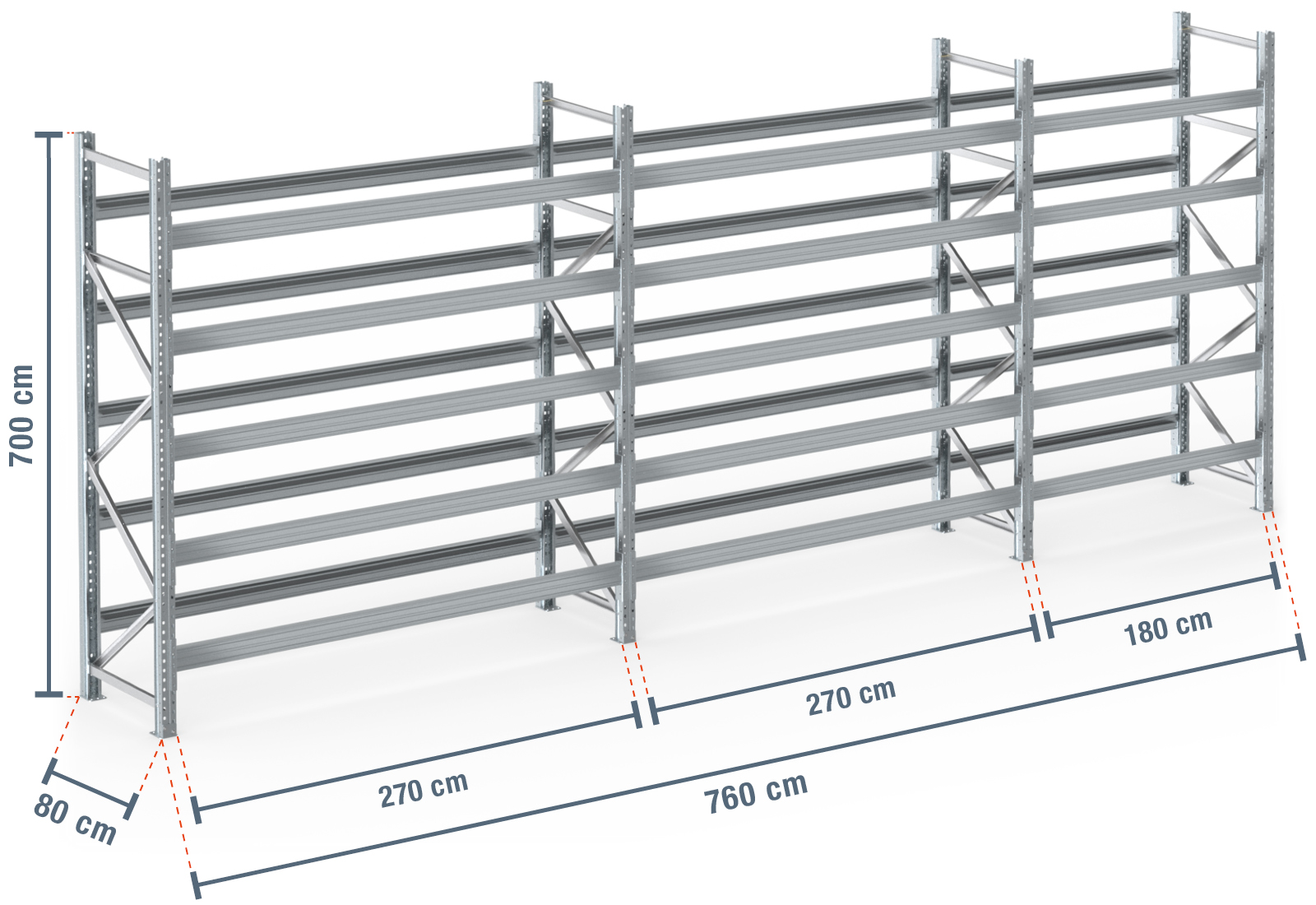 7,6 m pallereol PR9000F galvaniseret / 80 cm dyb / 7 m høj / 5 niveauer til 48 europaller