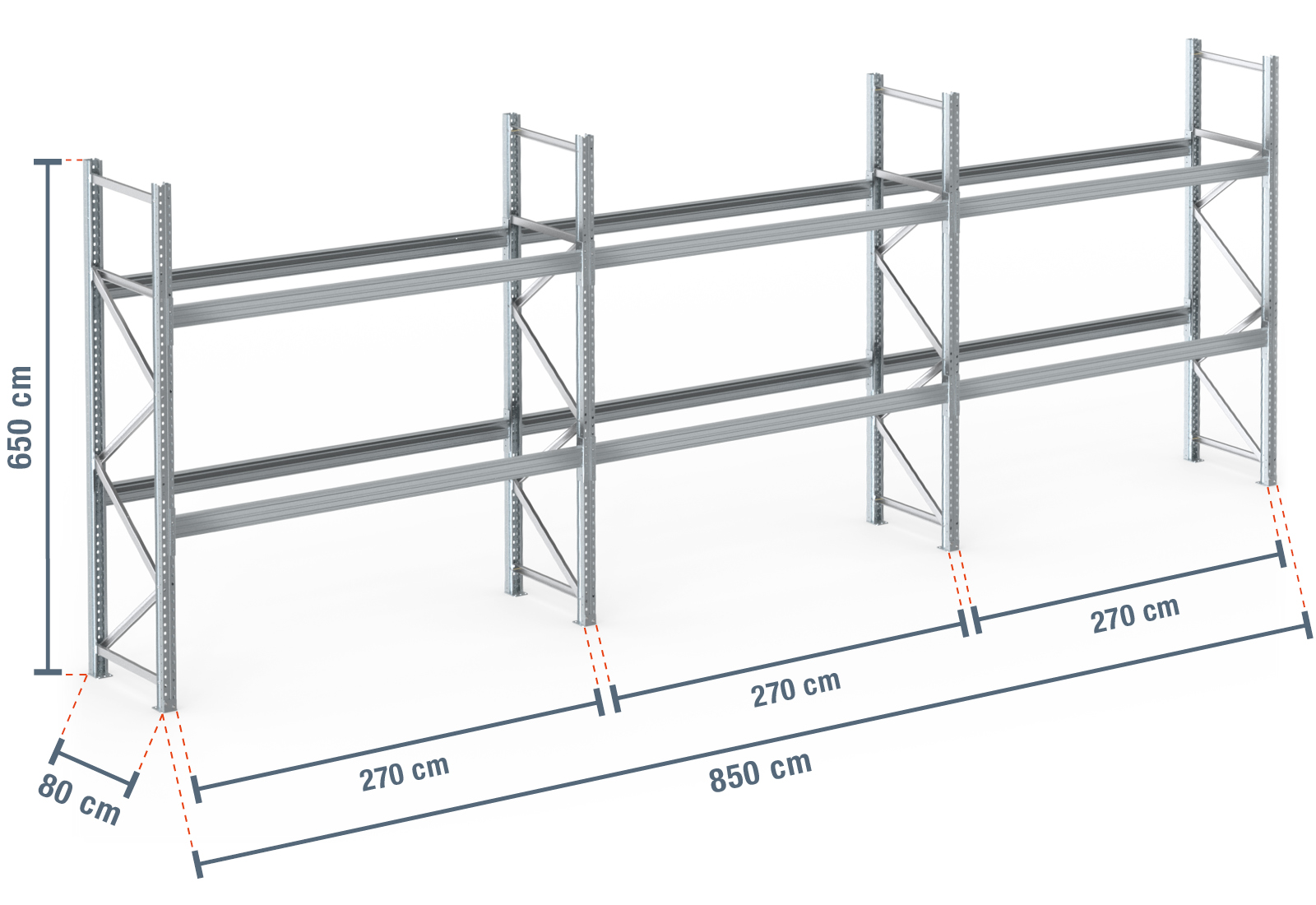 8,5 m pallereol PR9000F galvaniseret / 80 cm dyb / 6,5 m høj / 2 niveauer til 27 europaller