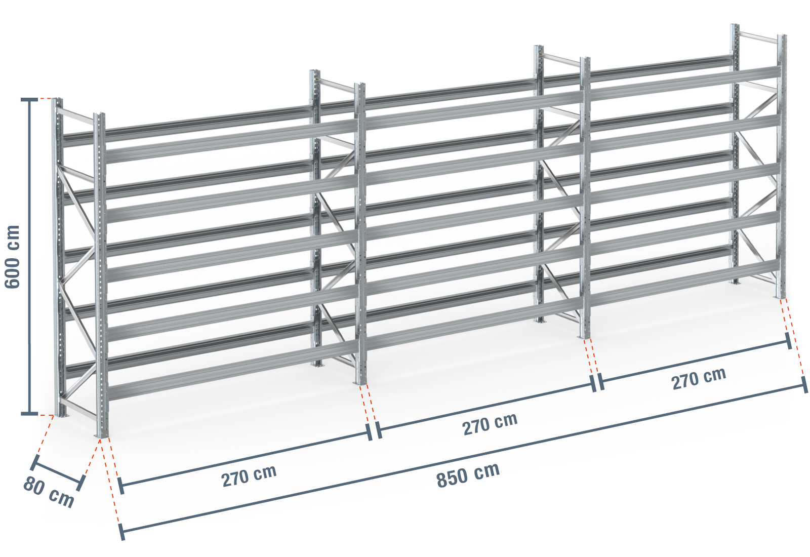 8,5 m pallereol PR9000F galvaniseret / 80 cm dyb / 6 m høj / 5 niveauer til 54 europaller