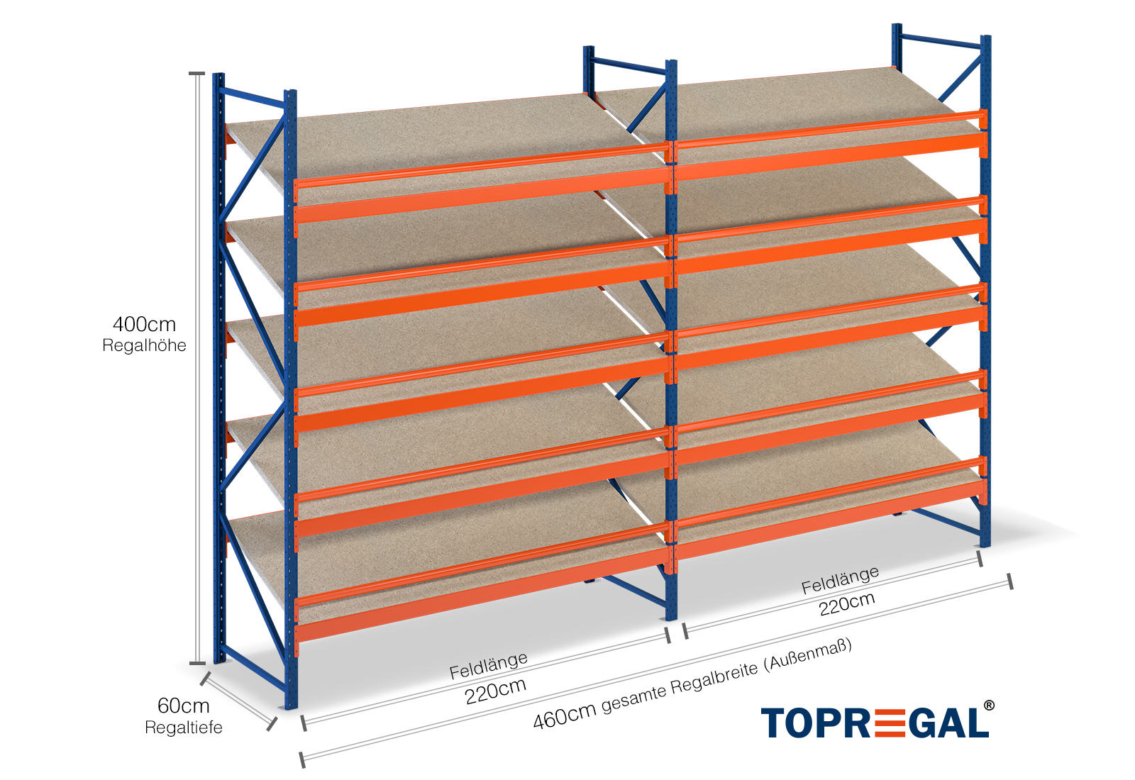 Alle data refererer til jævnt fordelte belastninger. Ved belastning må hylde- og feltbelastningen ikke overskrides. I princippet gælder de aktuelle retningslinjer for sikkerhed og sundhed på arbejdspladsen (Tysk DGUV-regel 208-061) under brug. TOPREGAL påtager sig intet ansvar for ulykker/skader forårsaget af ukorrekt brug. Vores ekspertrådgivningsteam vil med glæde besvare eventuelle spørgsmål, du måtte have. De angivne mål er omtrentlige og kan afvige med nogle få centimeter. Kontakt os, hvis du har brug for de nøjagtige mål til dit ønskede produkt.