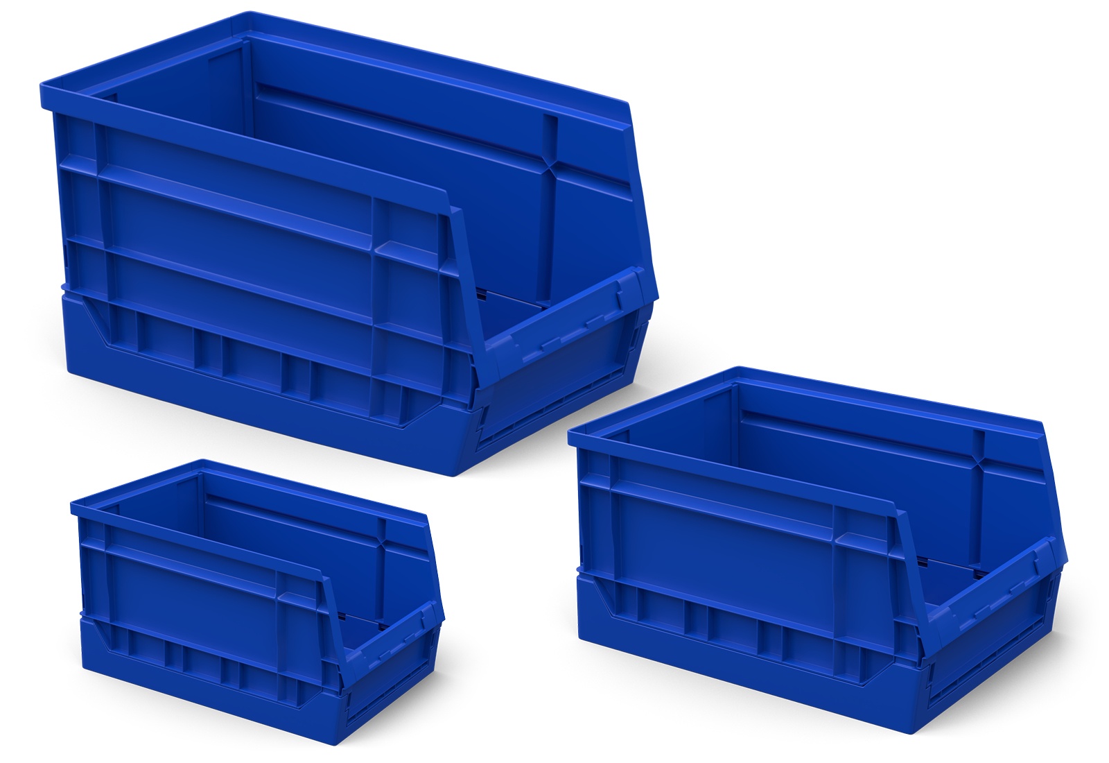 Disse åbne lagerkasser er ideelle til at fylde TOPREGAL lagerreoler, skråreoler, pakkeborde, reoler og pallereoler.
