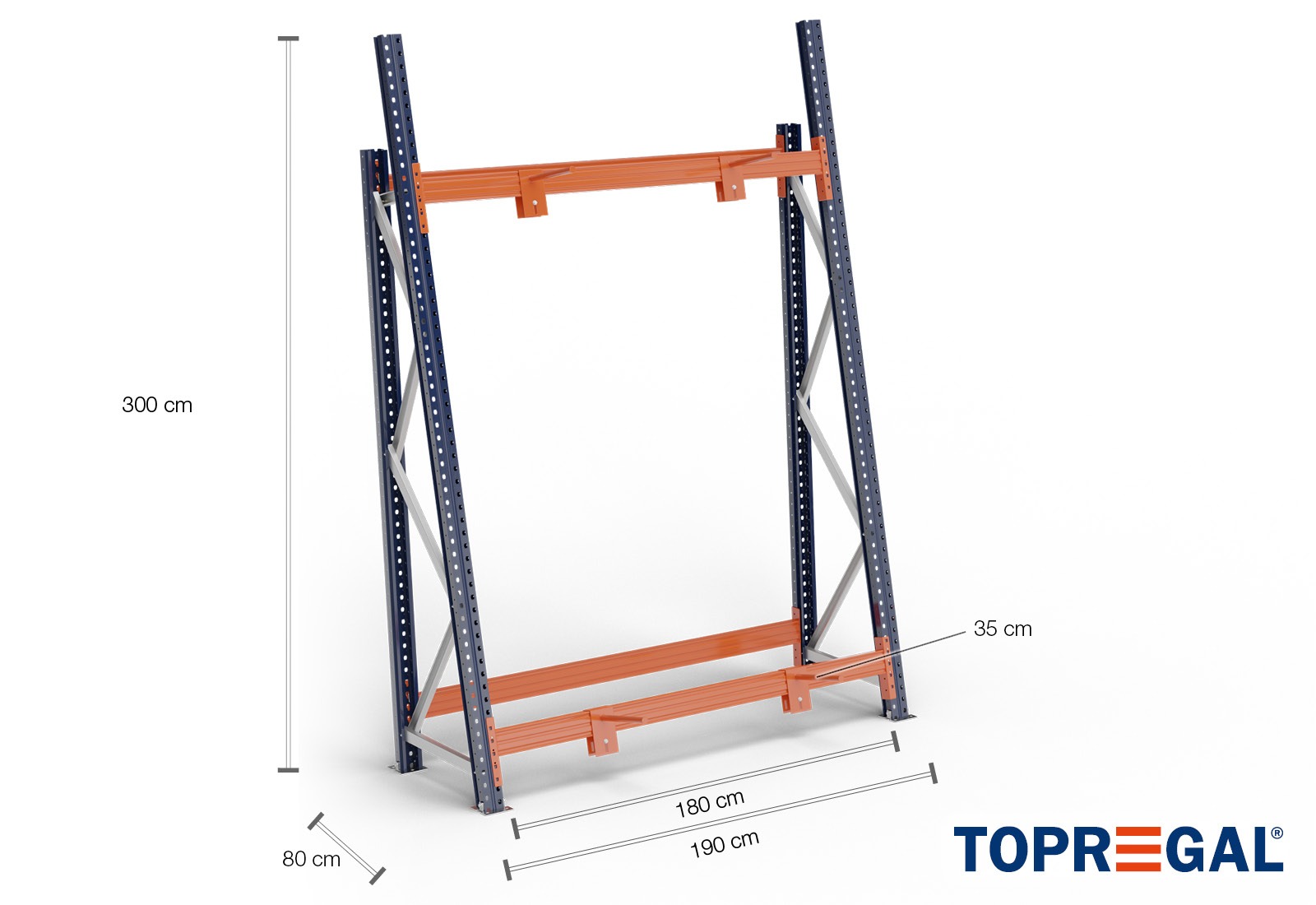 Denne fuldt konfigurerede vertikale reol er ideel til opbevaring af lette lange varer indendørs. Takket være den praktiske vertikale opbevaring kan du hurtigt se din varebeholdning og nemt hente den frem. Denne type opbevaring er også særlig pladsbesparende. Brug den vertikale reol TOPREGAL til for eksempel bordplader, længere træprofiler i isenkræmmeren eller også i skiafdelingen i sportsbutikker.