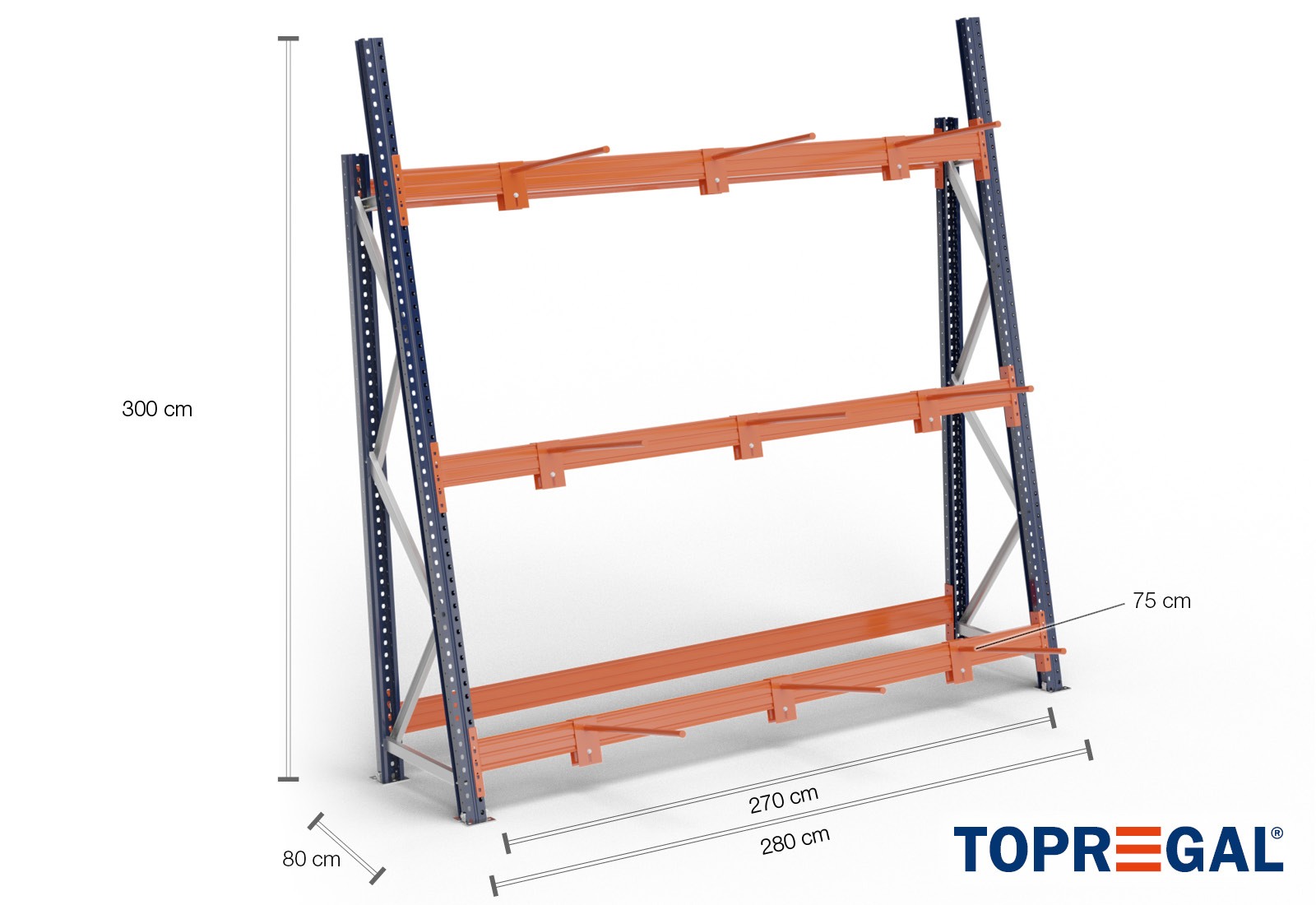Denne fuldt konfigurerede vertikale reol er ideel til opbevaring af lette lange varer indendørs. Takket være den praktiske vertikale opbevaring kan du hurtigt se din varebeholdning og nemt hente den frem. Denne type opbevaring er også særlig pladsbesparende. Brug den vertikale reol TOPREGAL til for eksempel bordplader, længere træprofiler i isenkræmmeren eller også i skiafdelingen i sportsbutikker.