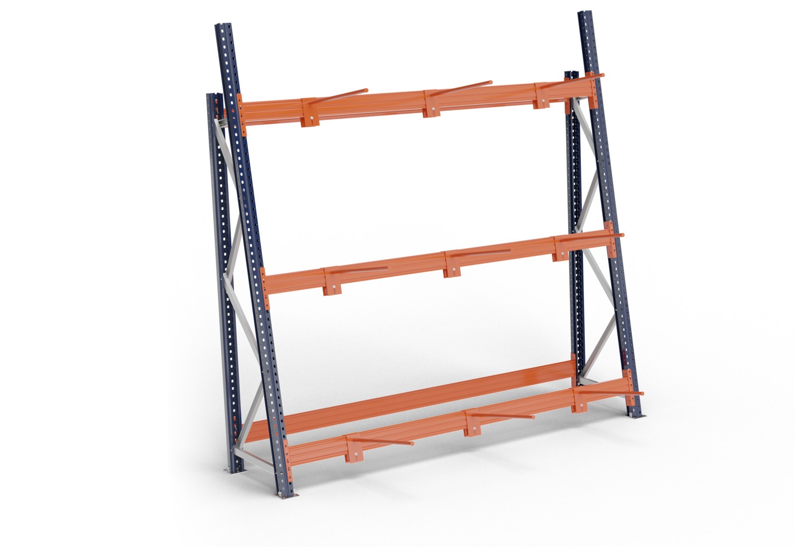 Med en vertikal belastning pr. grenadskiller på maksimum 250 kg og en feltbelastning på 1.500 kg pr. traversepar kan du opbevare lange varer på en særlig komfortabel måde. Traverserne er ophængt mellem de blålakerede standere, og låsestifter sikrer, at traverserne ikke utilsigtet løftes løs. De 750 mm lange skillegrene på den vertikale reol i signalfarven orange giver mulighed for fleksibel opbevaring i hylder af forskellige størrelser. Det enkle indstikssystem med låsende skruer med indvendig sekskant giver mulighed for individuel justering af hyldestørrelse og efterfølgende forskydning af grenadskillere. Det eneste, det kræver, er at løsne vingemøtrikken. På vertikale reoler med mere end 2 niveauer er der ydermere mulighed for at justere højden ved hjælp af de midterste fleksible traverser. Reolstanderne giver stabilitet og er fastgjort i gulvet med den medfølgende foddel og boltankrene af størrelsen M12 x 100 mm. Her kan justeringsplader også fjerne ujævnheder i gulvet.